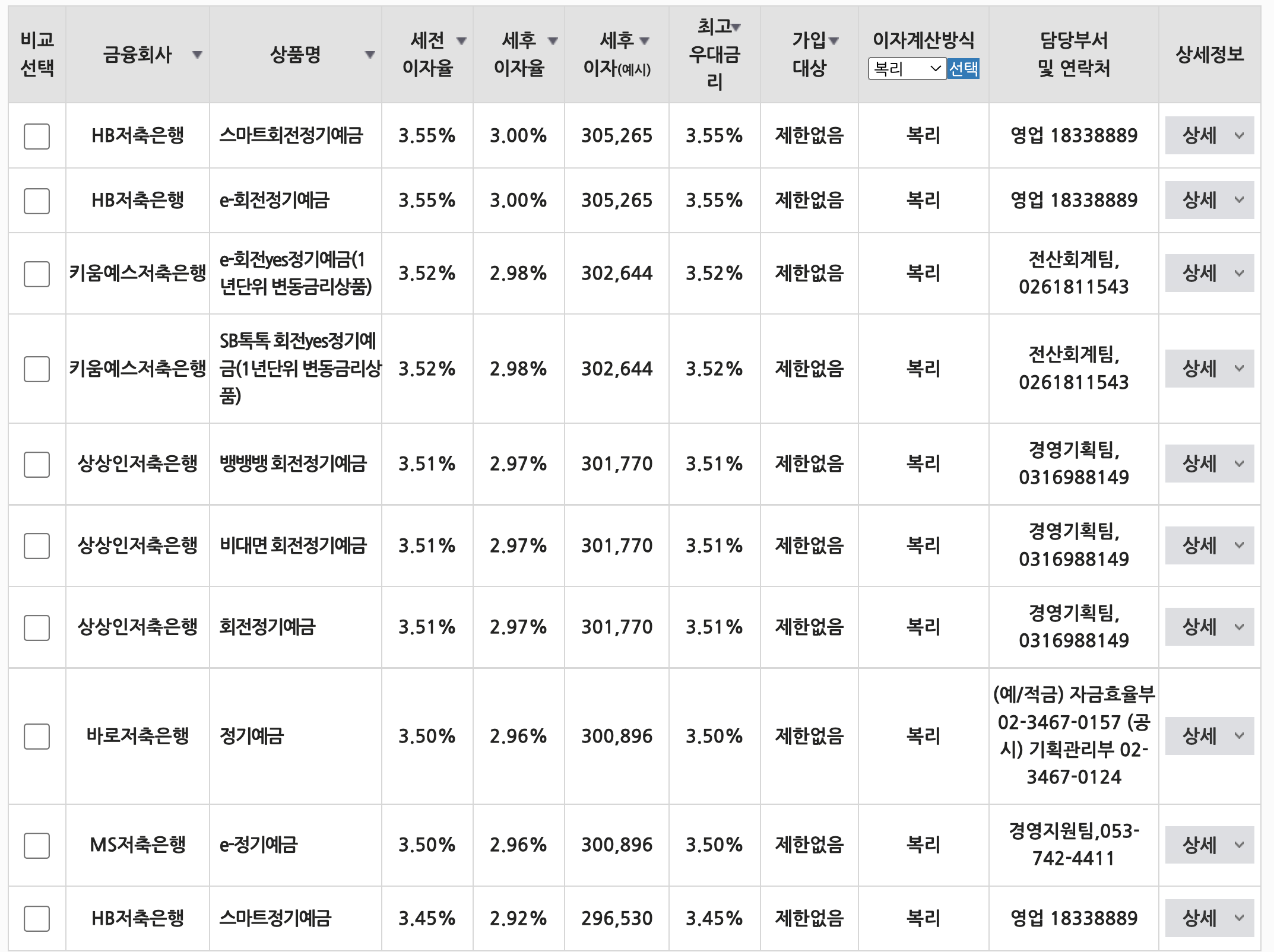 ※ 이 글은 6월 24일 기준으로 조회 시 작성된 글입니다. (복리 기준)(예금 기준)